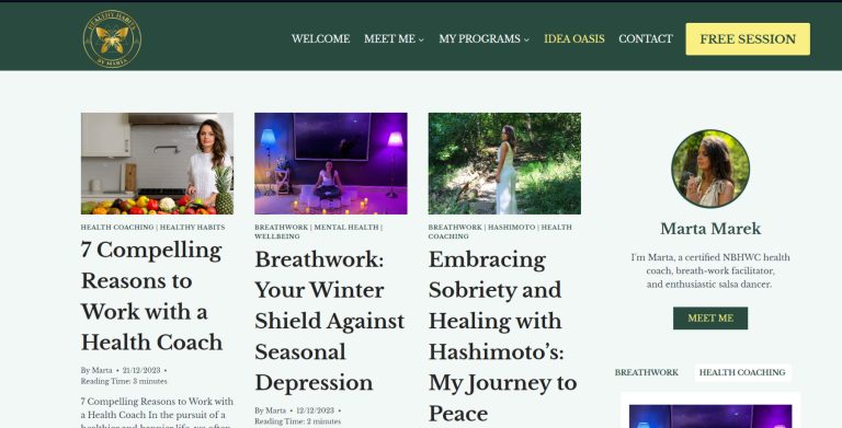 Na potrzeby całego projektu dobraliśmy kolorystykę, stworzyliśmy spokojne logo z akcentem, a na sam koniec wzbogaciliśmy stronę o prosty sklep woocommerce, w którym Pani Katarzyna będzie mogła oferować swoje Kursy czy nt. Karty Podarunkowe.